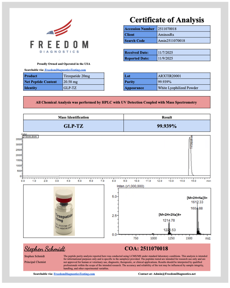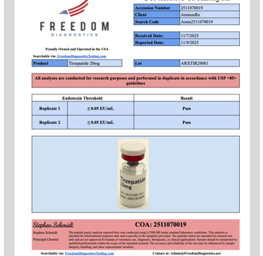 COA's can be tracked here: https://freedomdiagnosticstesting.com/search-for-your-coa-based-on-the-unique-accession-number/