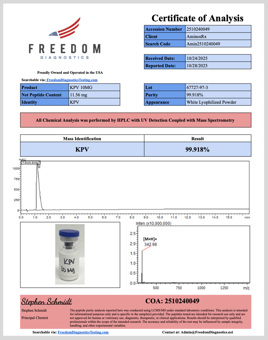 Manual COA tracking can be done here: https://freedomdiagnosticstesting.com/search-for-your-coa-based-on-the-unique-accession-number/