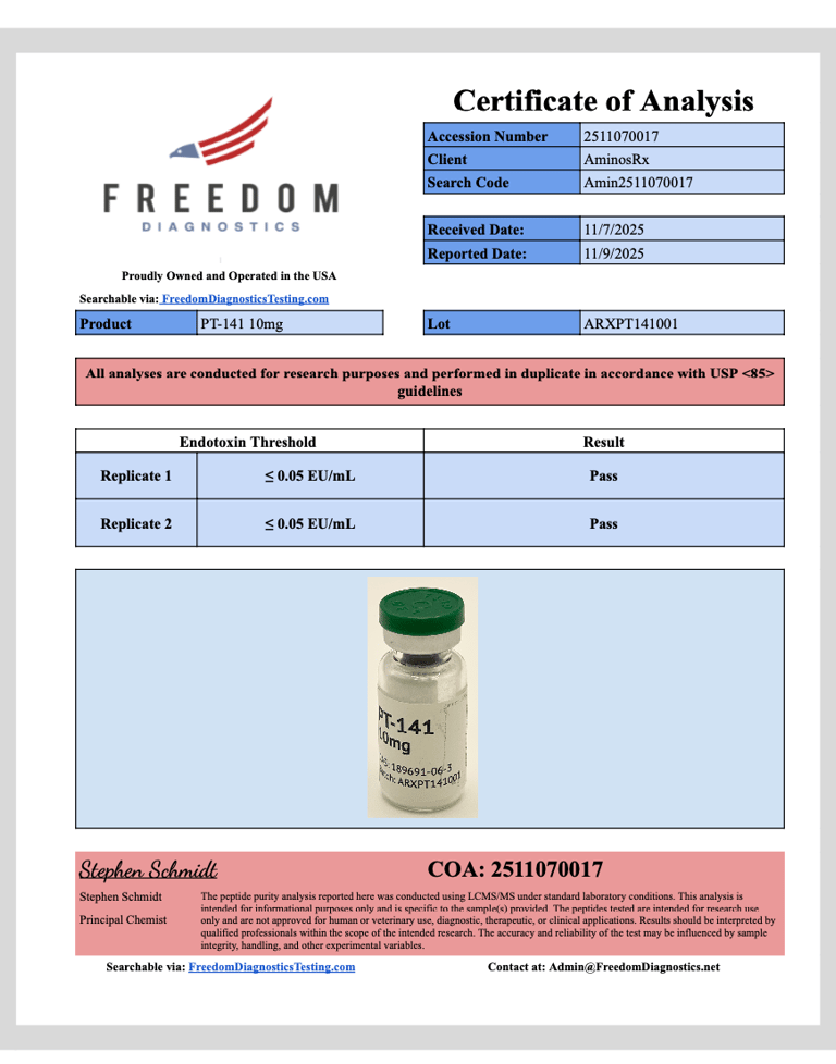 Manual COA tracking can be done here: https://freedomdiagnosticstesting.com/search-for-your-coa-based-on-the-unique-accession-number/